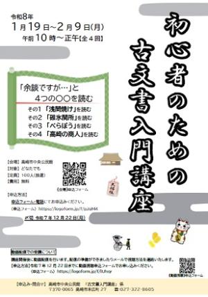 高崎の歴史や古文書に興味をお持ちの方を対象に「古文書入門講座」を開催します。