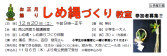【内容】「ーお正月飾りー しめ縄づくり教室」 【持物】作業できる服装、はさみ(紙垂づくりに使用)、飲...
