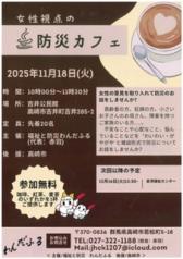 女性の意見を取り入れて防災のお話をしませんか?男性の参加もお待ちしています。 【内 容】 防災に関...