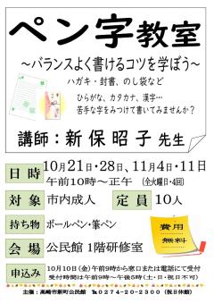 公開日:2025年10月01日くらし・趣味新町公民館「ペン字教室」~バランスよく書けるコツを学ぼう~(新町公民館)