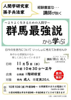 公開日:2025年10月01日教育・学習新町公民館「よりよく生きるための人間学」~群馬最強説から学ぶ~(新町公民館)