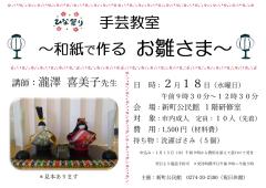 【内 容】日本古来の「和紙」を使い、伝統的なひな人形を作る。